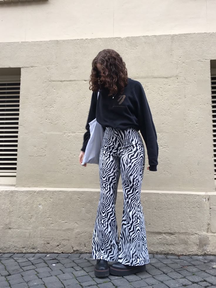 Corte flare y estampado de cebra metalizado. Estilo retro y atrevido.